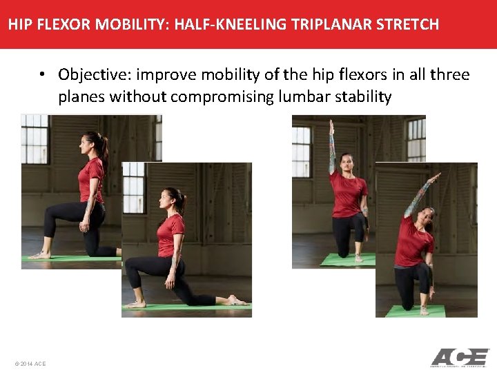 Even so its common among rehab professionals to forget about how important this is to our athletic population. The half-kneeling triplanar stretch of the hip flexors improves mobility in all three planes without compromising lumbar stability.